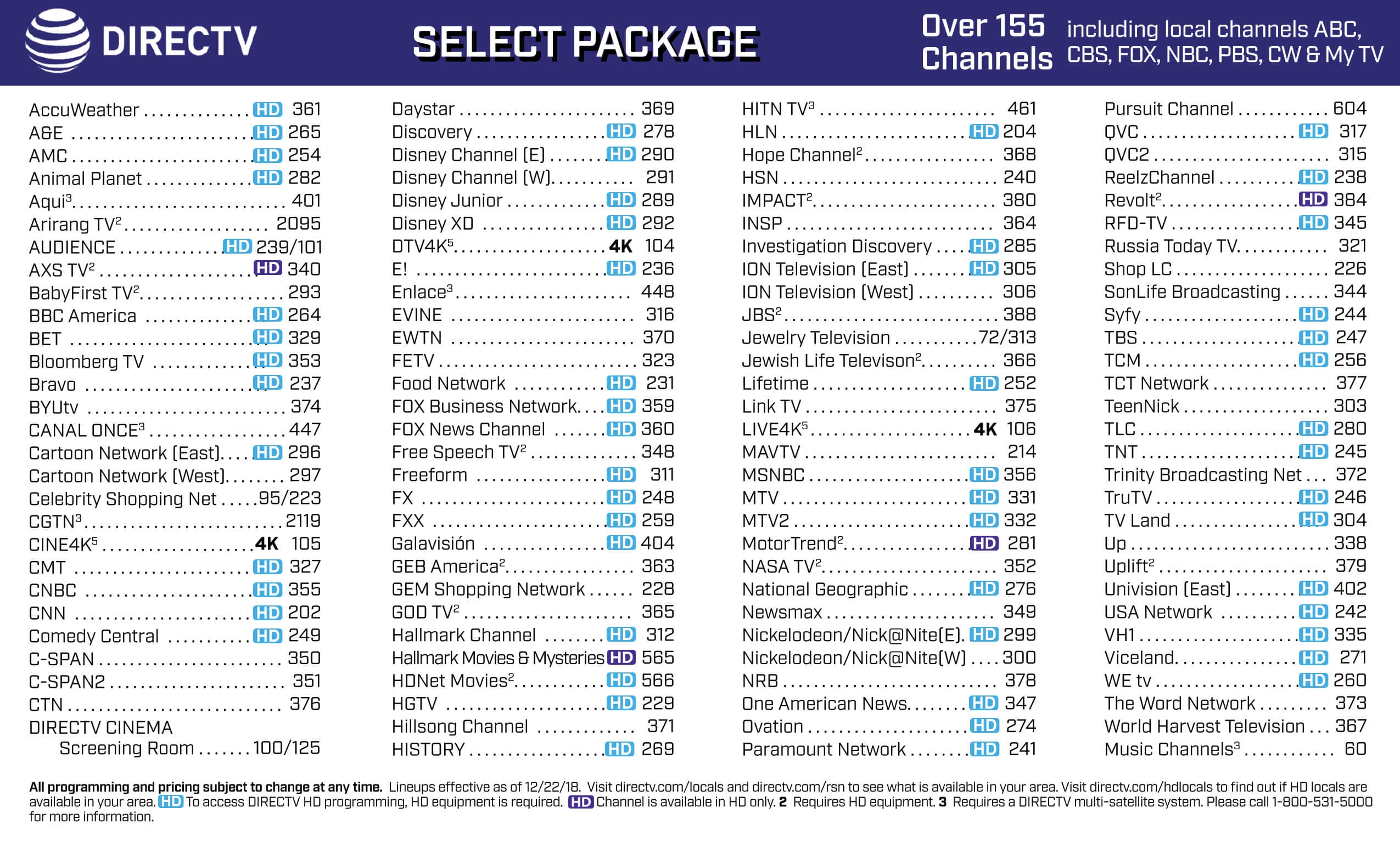 Printable Directv Channel Guide Select Package