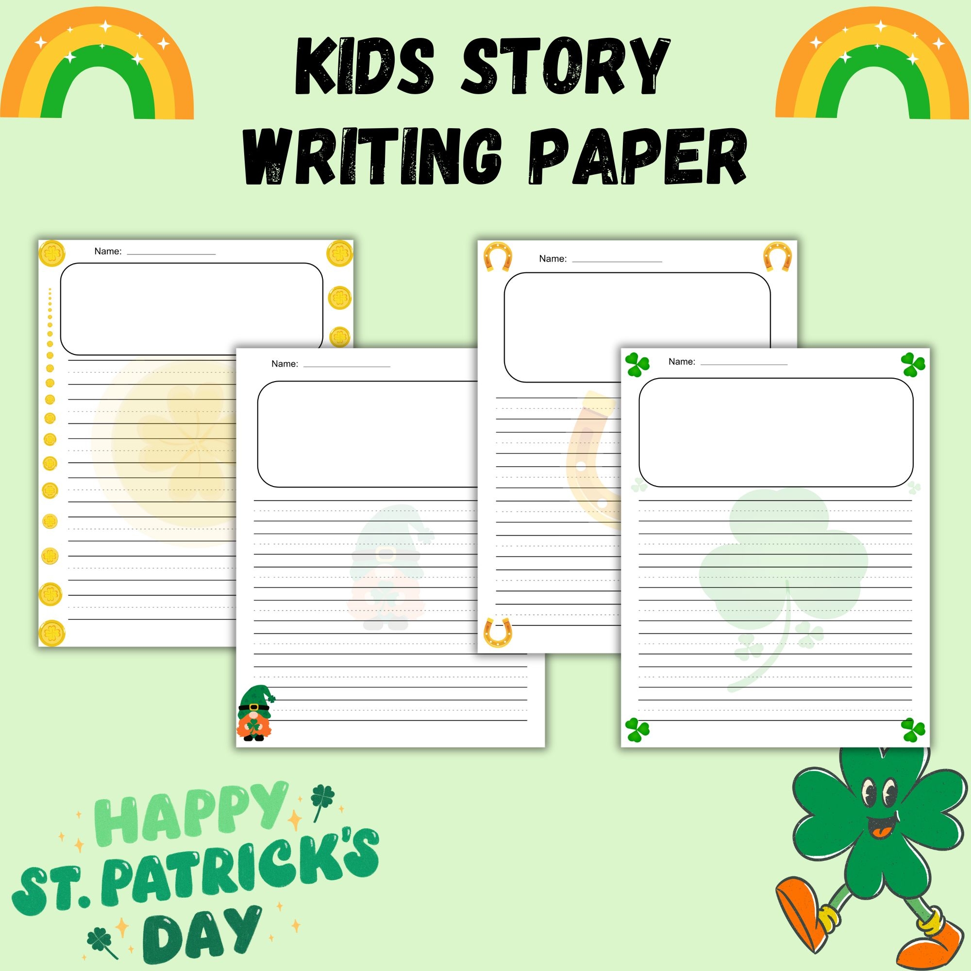 St Patrick s Day Borders Kids Story Writing Paper Handwriting And Drawing Paper Made By Teachers