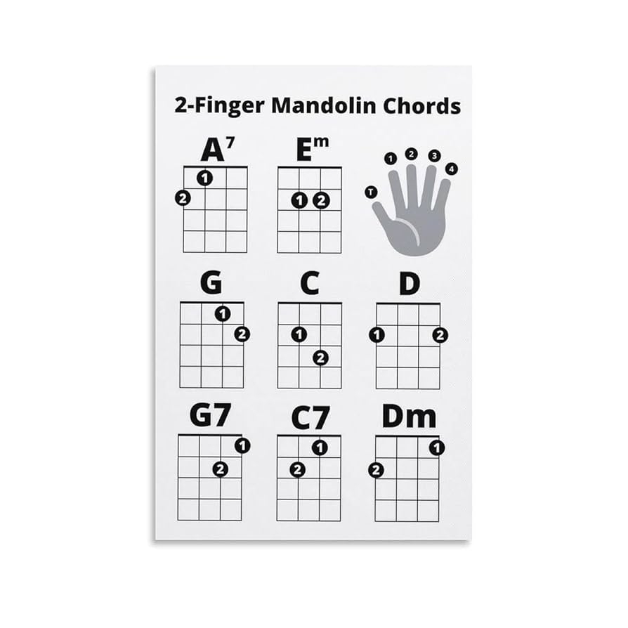 Amazon ABCBY 2 Finger Beginner Mandolin Chords Sheet Poster