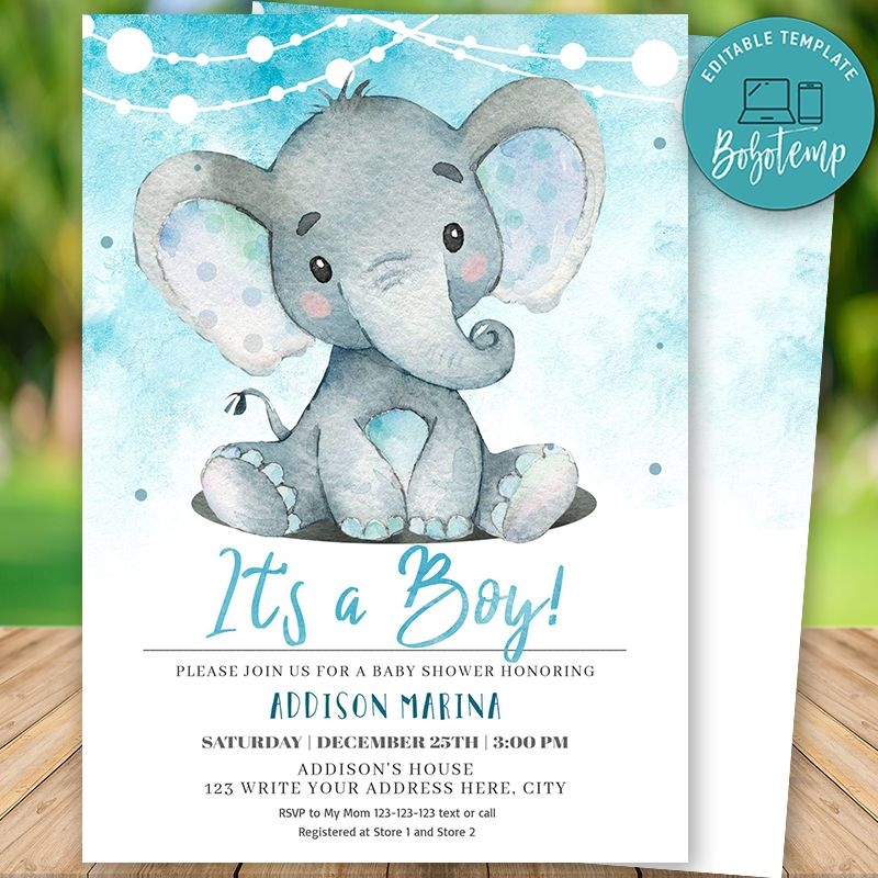 Baby Elephant Baby Shower Invitation Boy Baby Shower Printable File Edit Yourself SH08