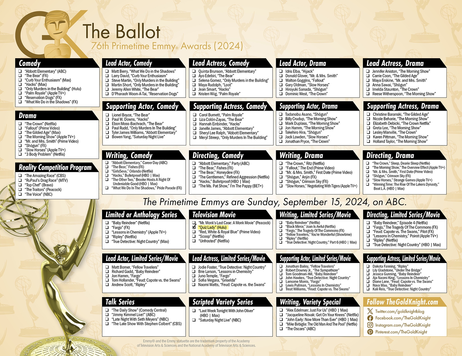 2024 Primetime Emmy Awards Printable Ballot The Gold Knight Latest Academy Awards News And Insight