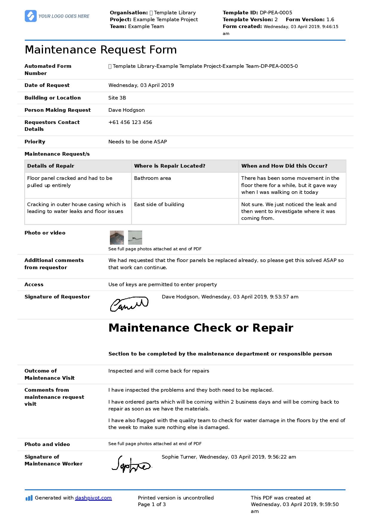 Maintenance Request Form Template Better Than PDF And Excel