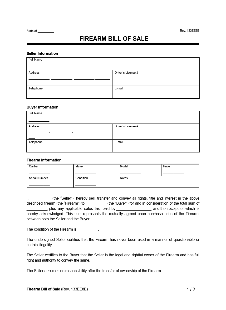 Free Firearm Gun Bill Of Sale Form PDF U0026 Word Templates