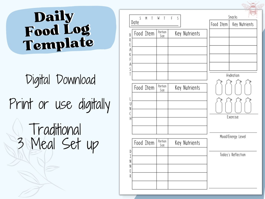 Digital Daily Food Log Template Instant Download 3 meal Nutrition Tracker Printable Diet Tracker Minimalist Daily Food Log Letter Size Etsy