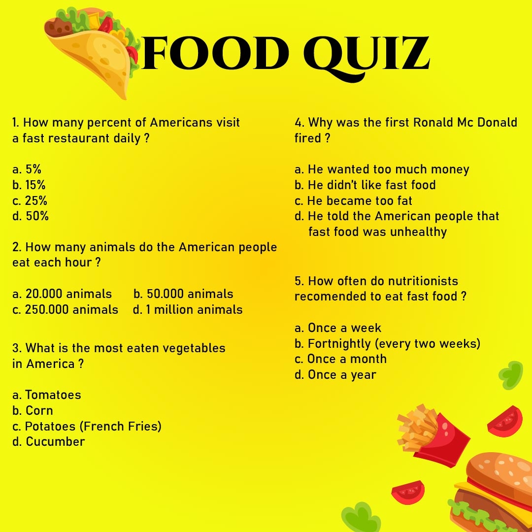Whether you’re a gourmet guru or a fast food fanatic, this quiz has something for everyone. Grab a pen and get ready to tickle your taste buds with trivia that will leave you hungry for more. Let’s dig in!