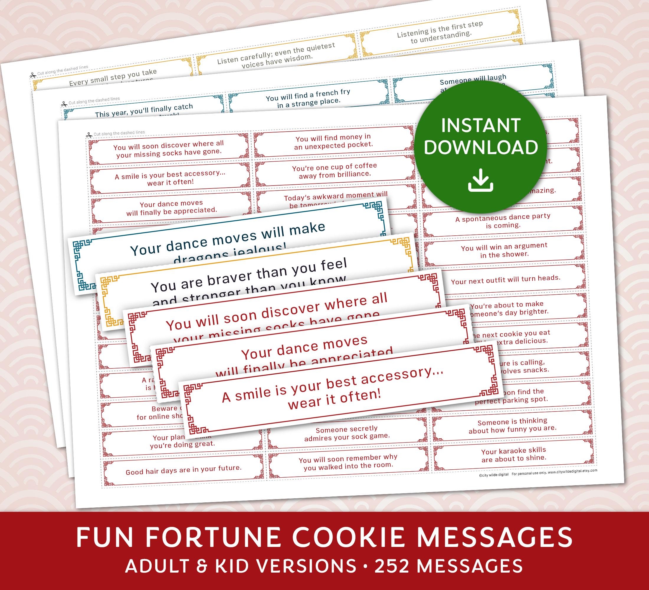 120 Funny Fortune Cookies Messages Digital Download Funny Fortune Cookies Messages Printable Fortune Messages Cute Funny And Uplifting Etsy