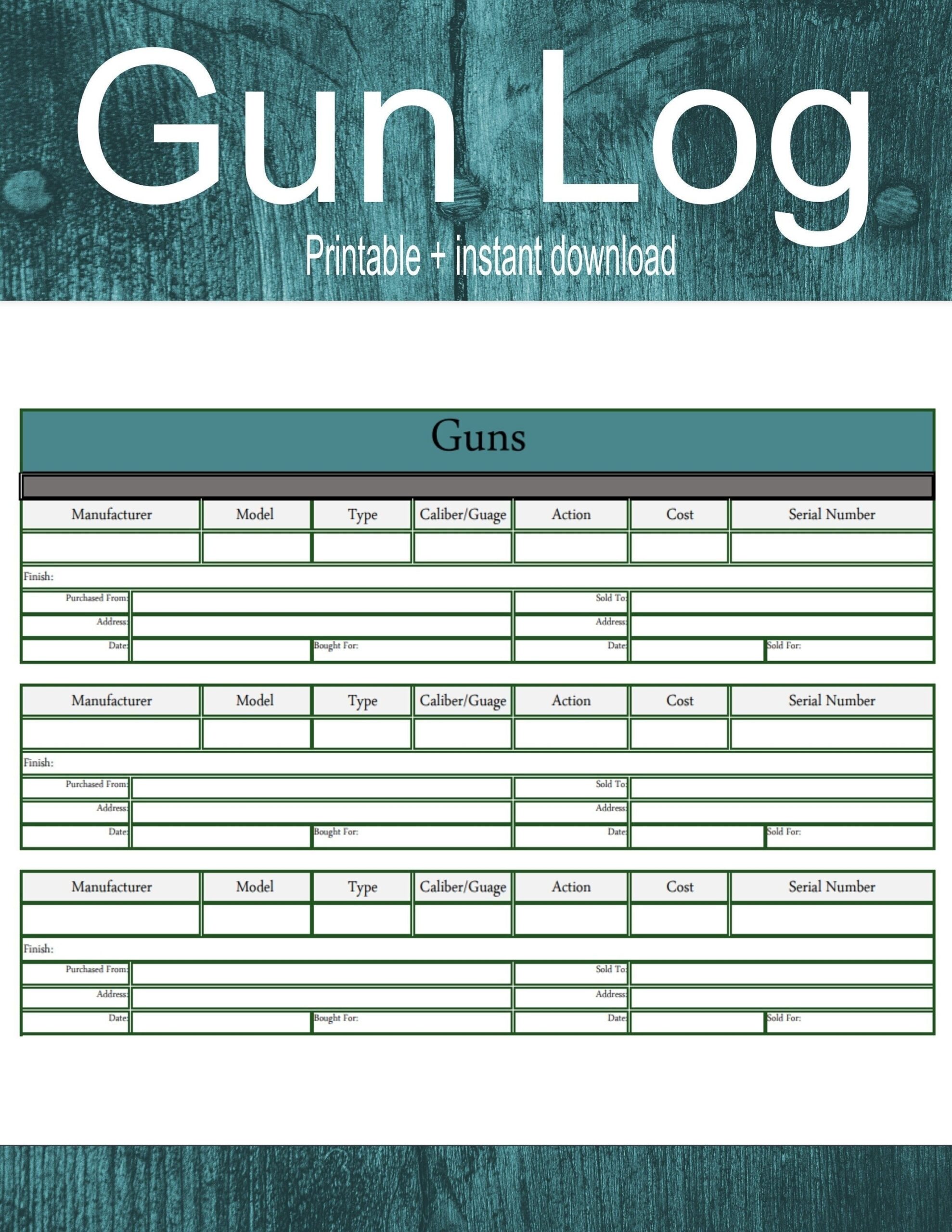 Gun Log Gun Tracker Gun Inventory Etsy