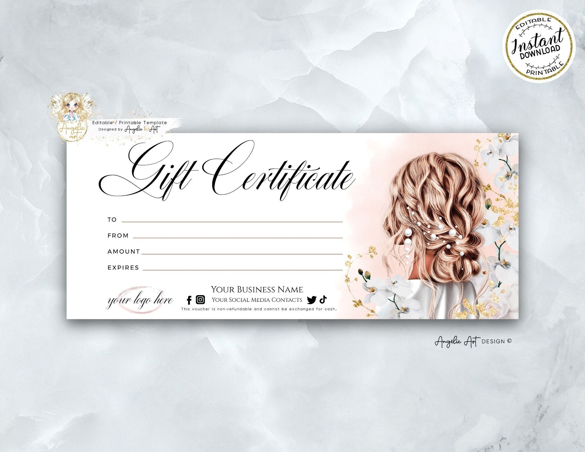 Editable Beauty Gift Certificate Template Hair Salon Gift Voucher