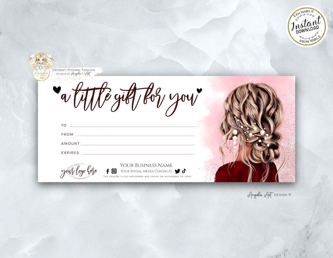 Burgundy Hair Gift Certificate Template Hair Salon Gift Voucher Hair Stylist Editable Printable Gift Card Hair Certificate Template Etsy