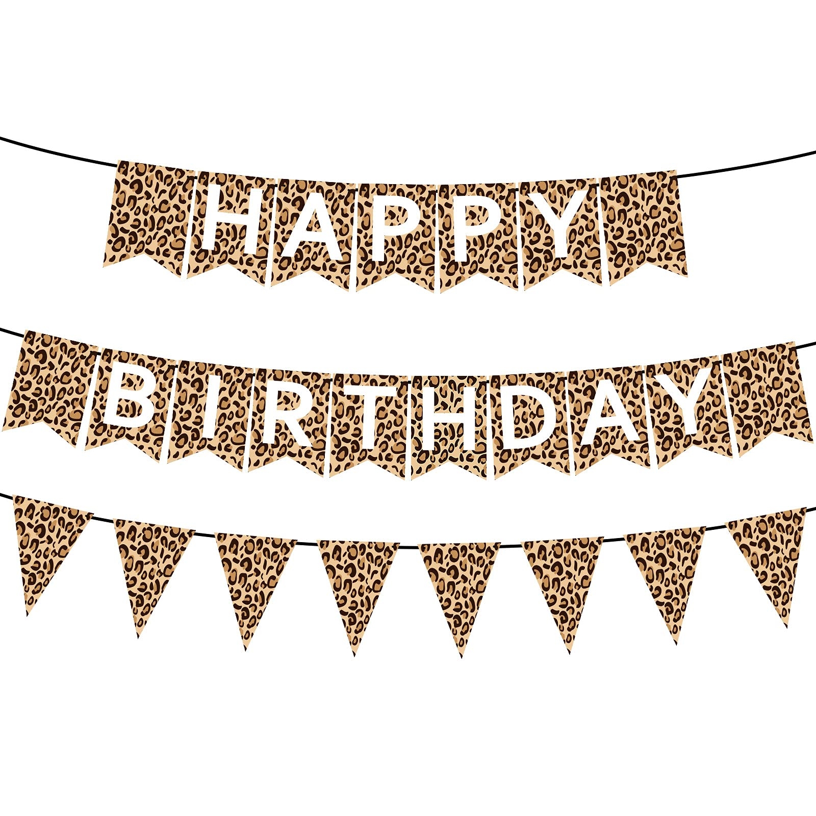 Leopard Print Happy Birthday Banner Cheetah Print Pennant Safari Party Sign Banner Jungle Animals Theme Birthday Decorations Boy Girl Baby Shower Supplies Baby Kids 1st First Decor Amazon sg Toys