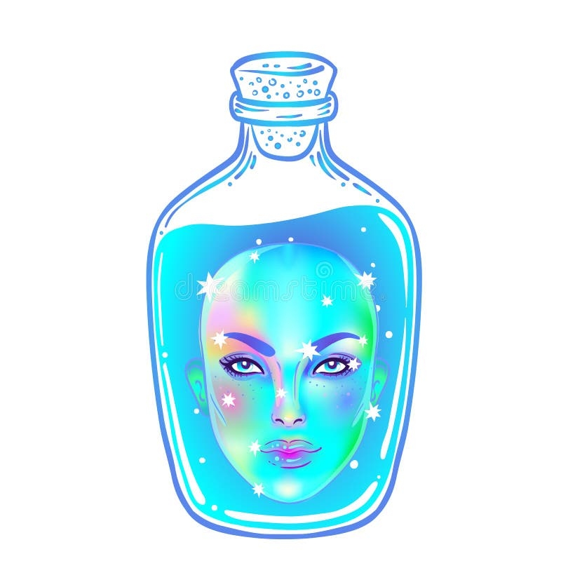Female Head Inside A Bottle With A Blue Liquid Vector Color Illustration Stock Vector Illustration Of Glass Bald 230458856