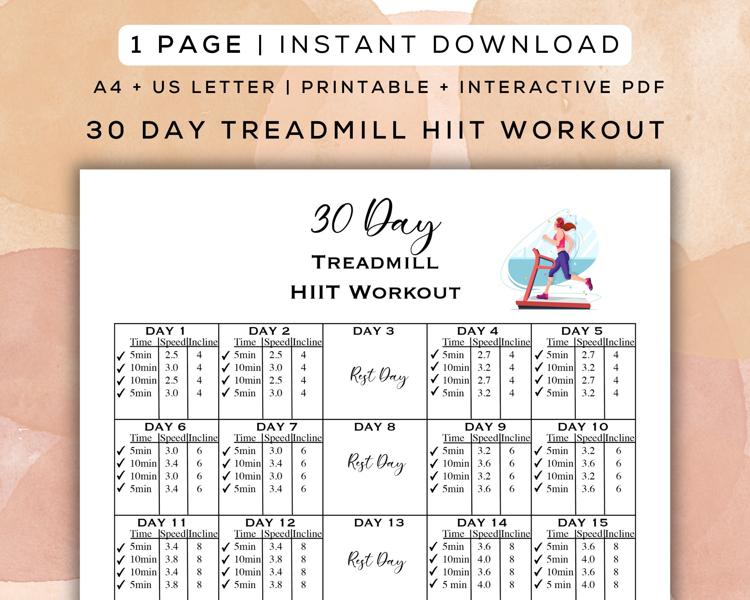 30 Day Treadmill HIIT Workout Plan Beginner Cardio printable Interactive PDF Etsy