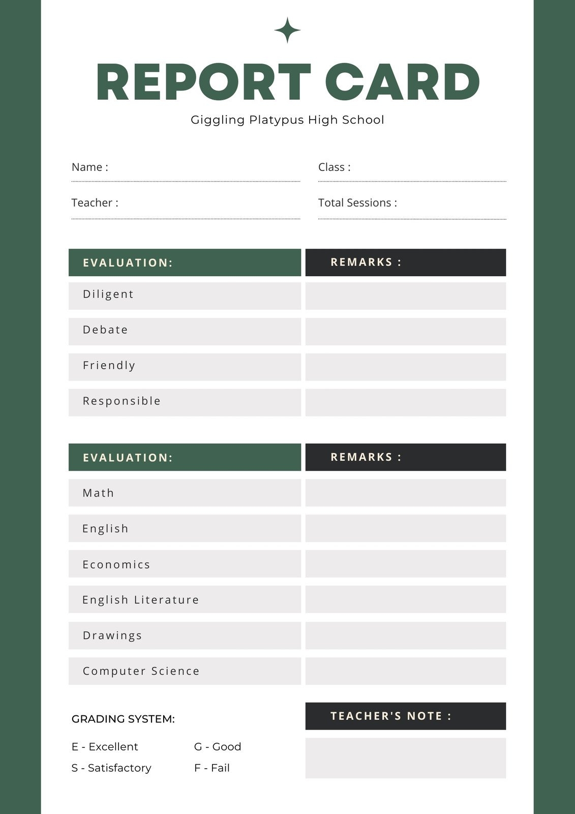 Homeschool Report Card Template Homeschool Grade Card Sheet