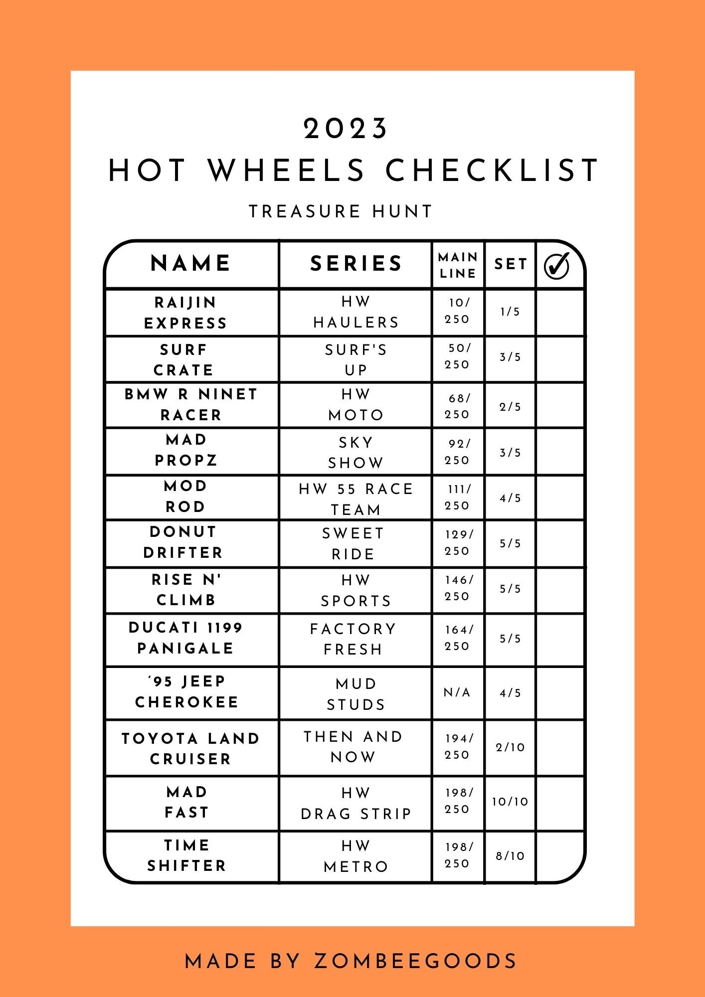 Printable 2024 Hot Wheels Treasure Hunt And Super Treasure Hunt Checklist Tracker A4 Letter Size Instant Download