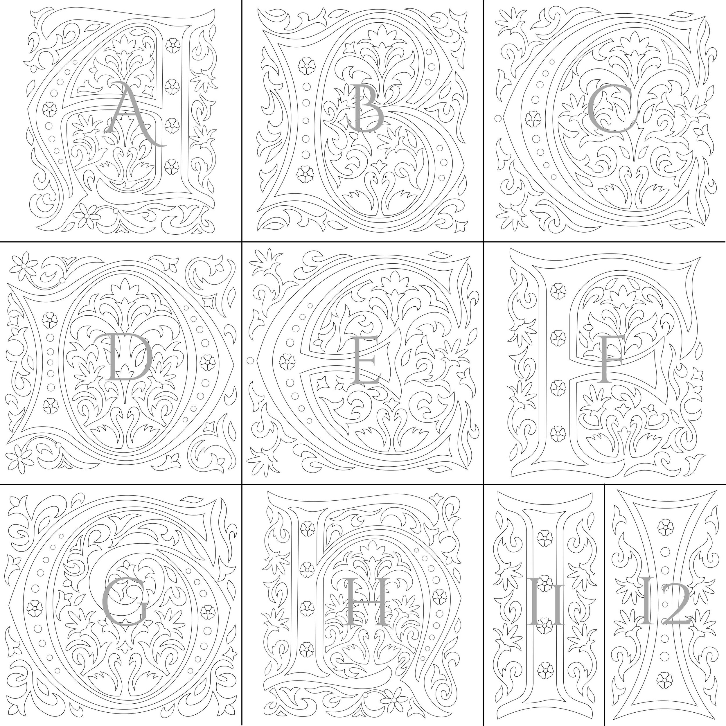 Printable Illuminated Letters for Kid Coloring