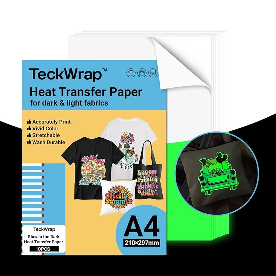 TECKWRAP Printable Heat Transfer Paper For T Shirts 10 Sheets 8 3