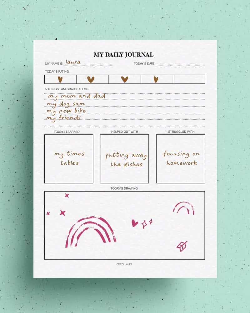 Free Daily Journal And Profile Printables For Kids Crazy Laura
