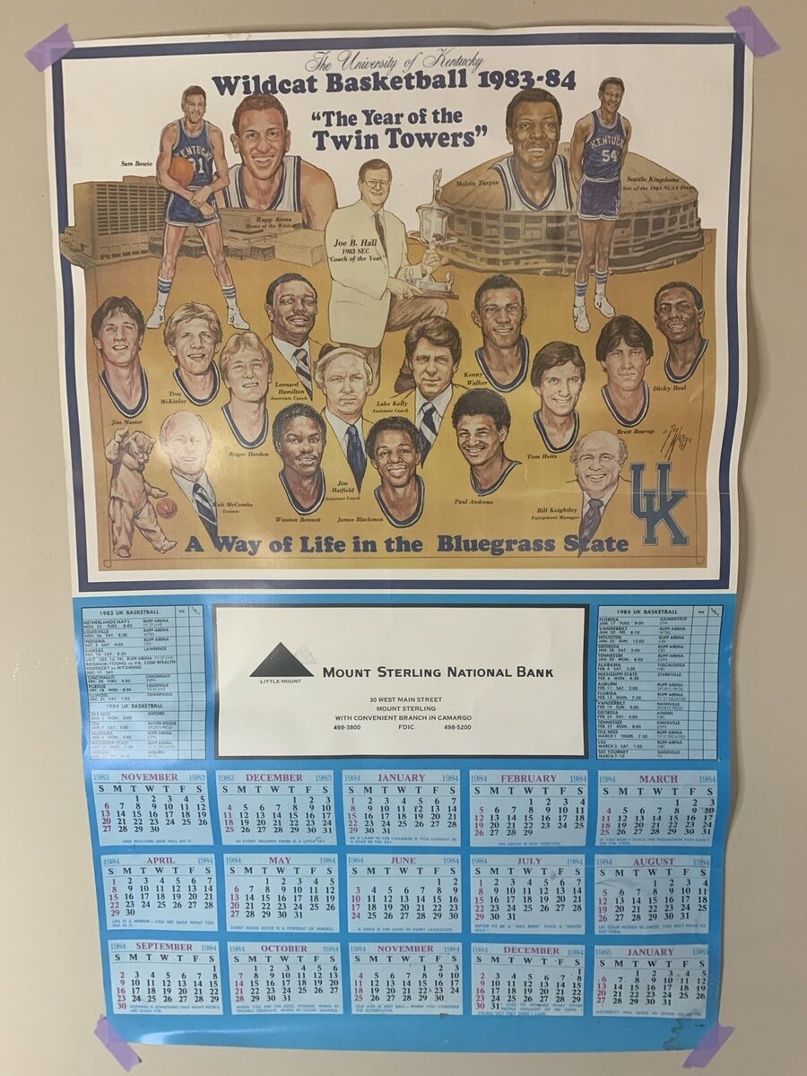 Kentucky Wildcats Basketball Schedule Calendar Poster Twin Towers 1983 1984 BBN