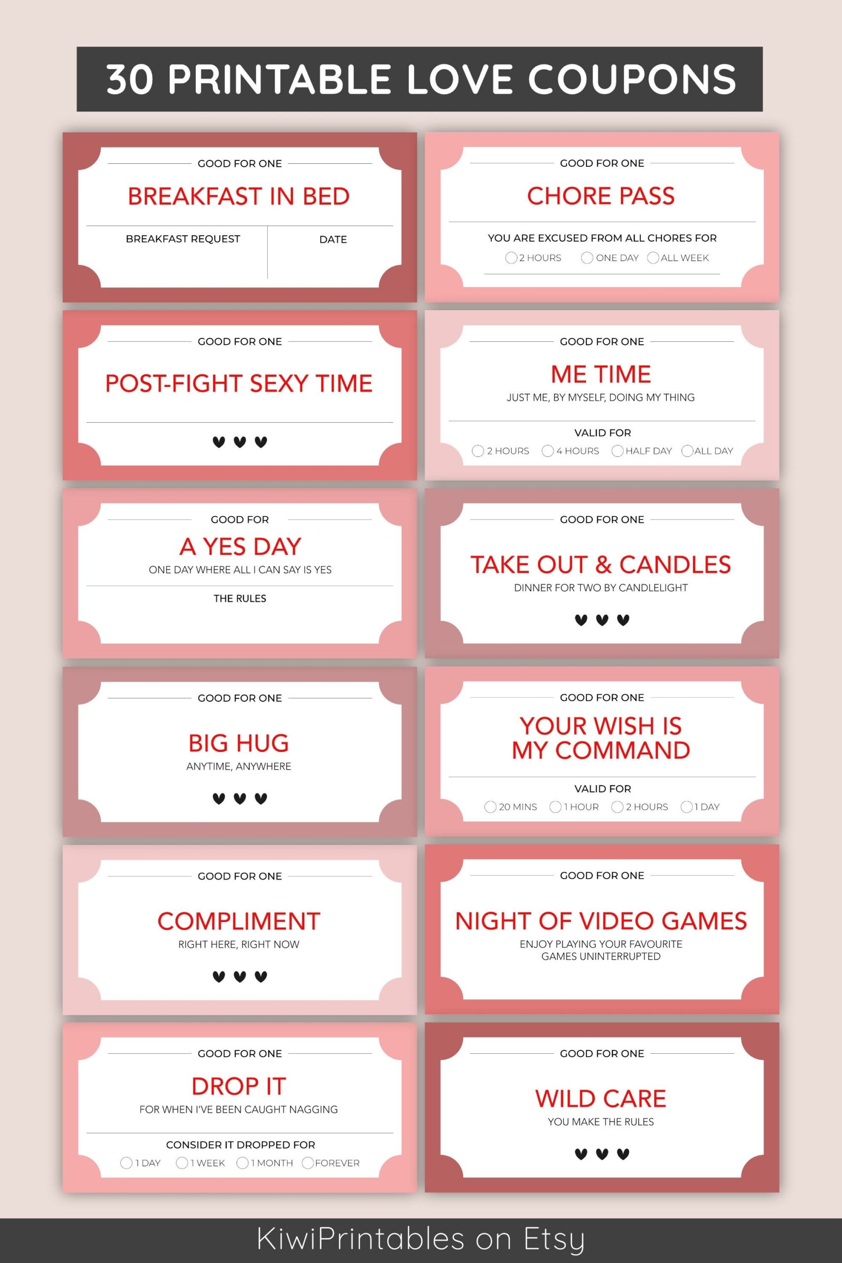 Fun Love Coupon Book 30 Printable Vouchers digital Download Etsy