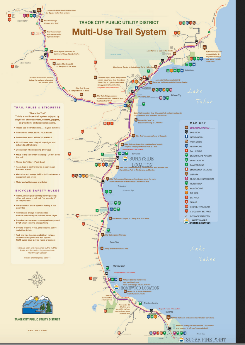 Large Detailed Tourist Map Of Lake Tahoe Ontheworldmap