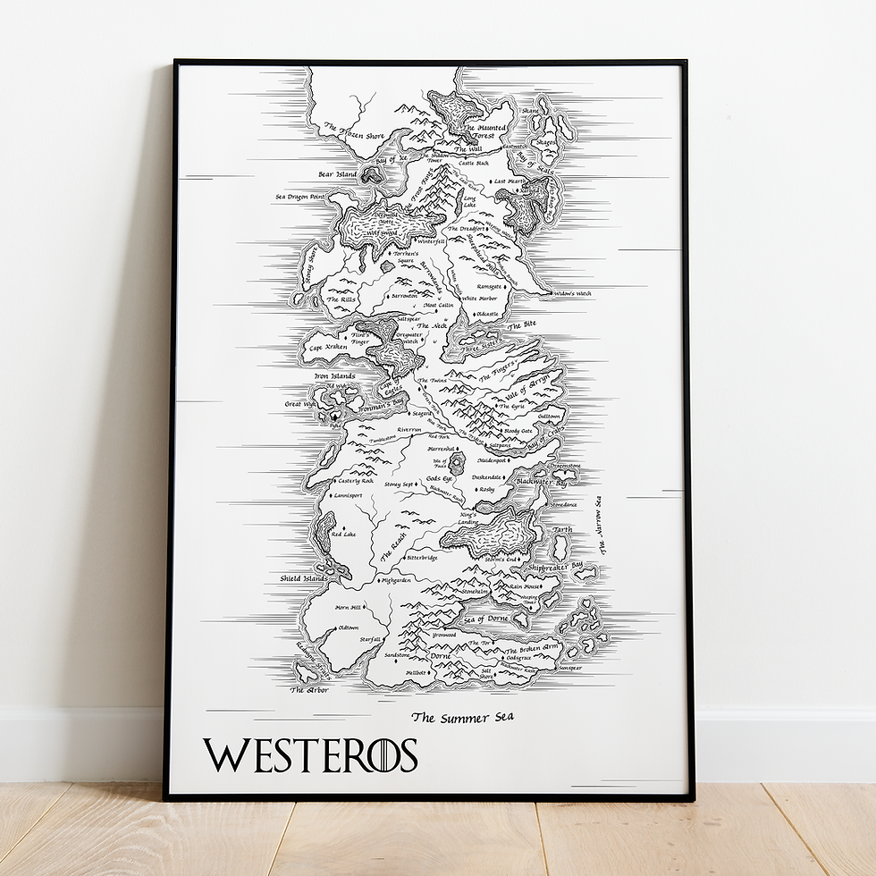 WESTEROS A Game Of Thrones Map Print Fictional Map Minimalist Map Art Wall Art Art Print