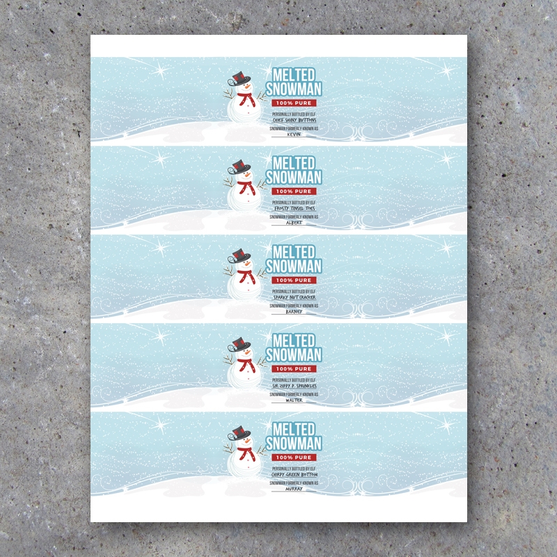 Free Printable Melted Snowman Water Bottle Labels Easy DIY
