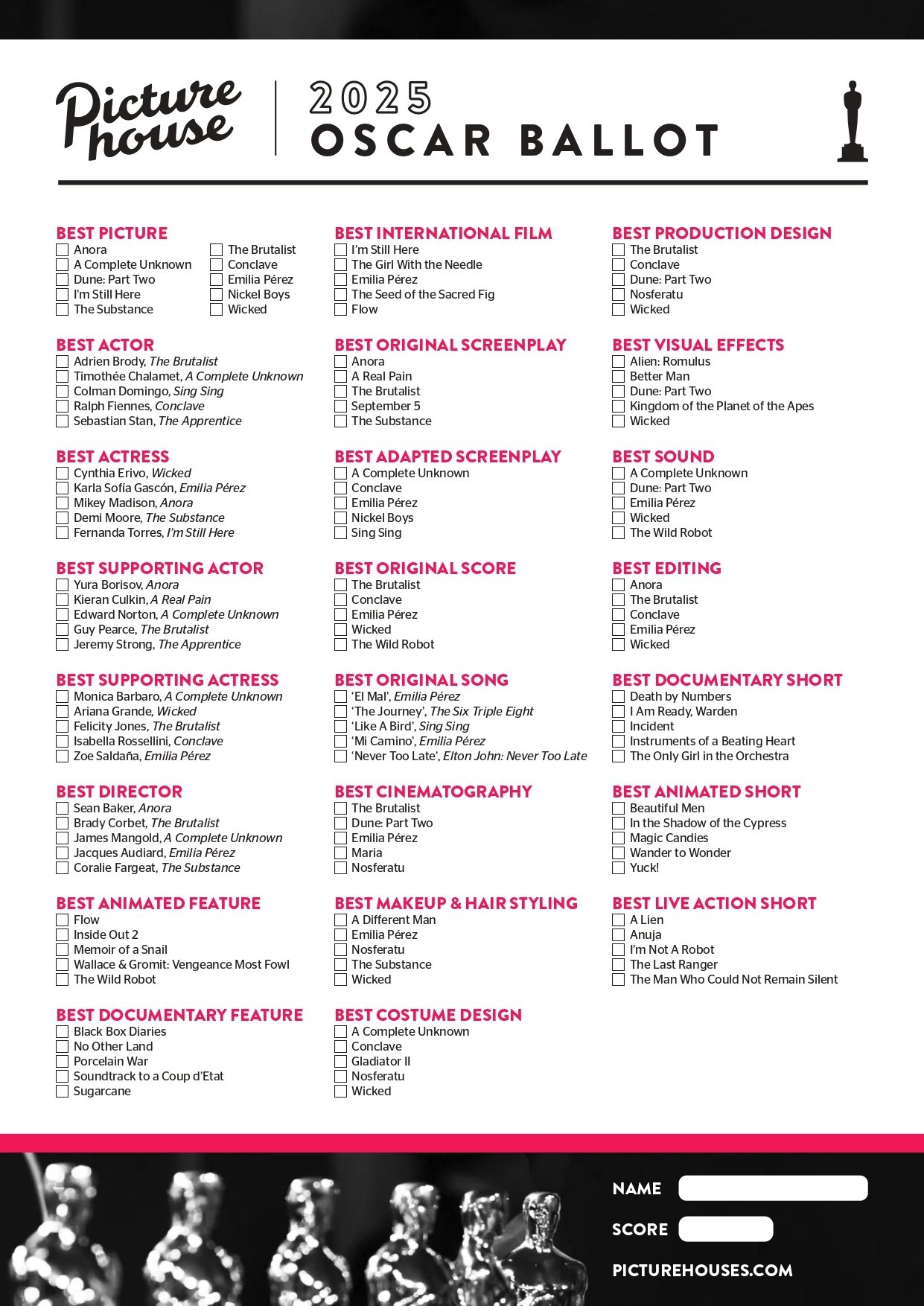 Print out your ballot, gather your friends and family, and start predicting who will take home the coveted golden statuettes. Will it be a night of surprises or will the favorites sweep the awards? Only time will tell!
