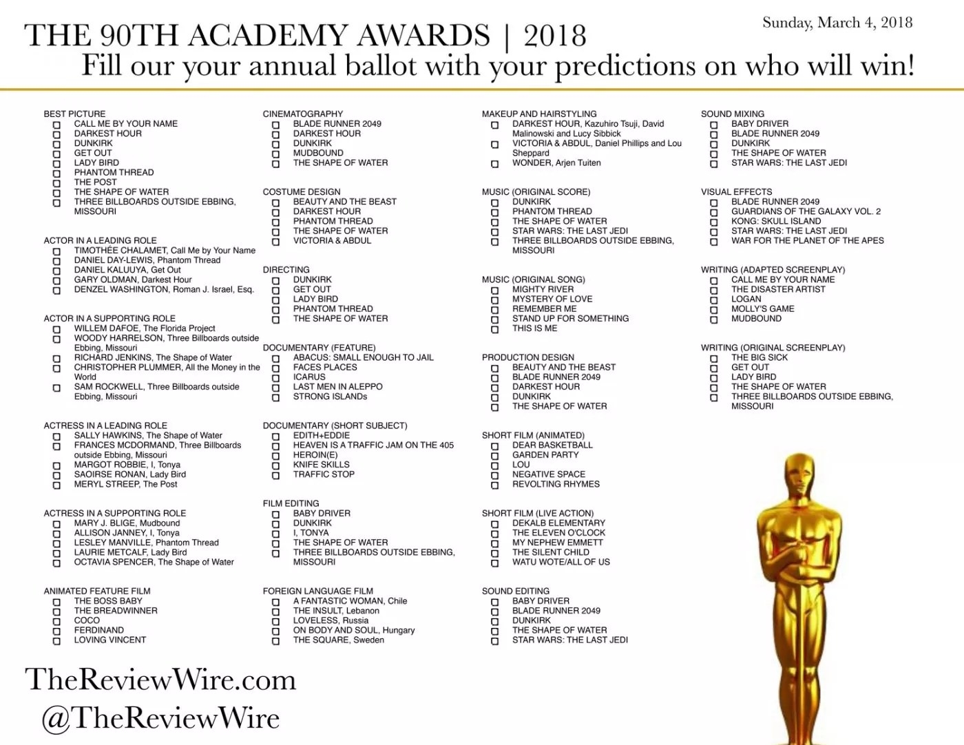 Printable Oscar Ballot 2018 The Complete List The Review Wire