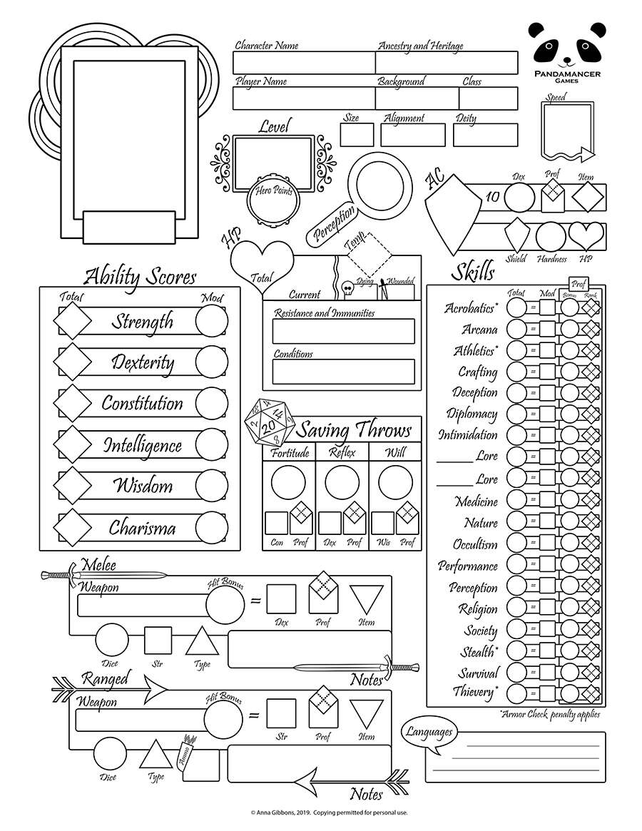 Pathfinder 2 Simplified Character Sheet Pandamancer Games DriveThruRPG