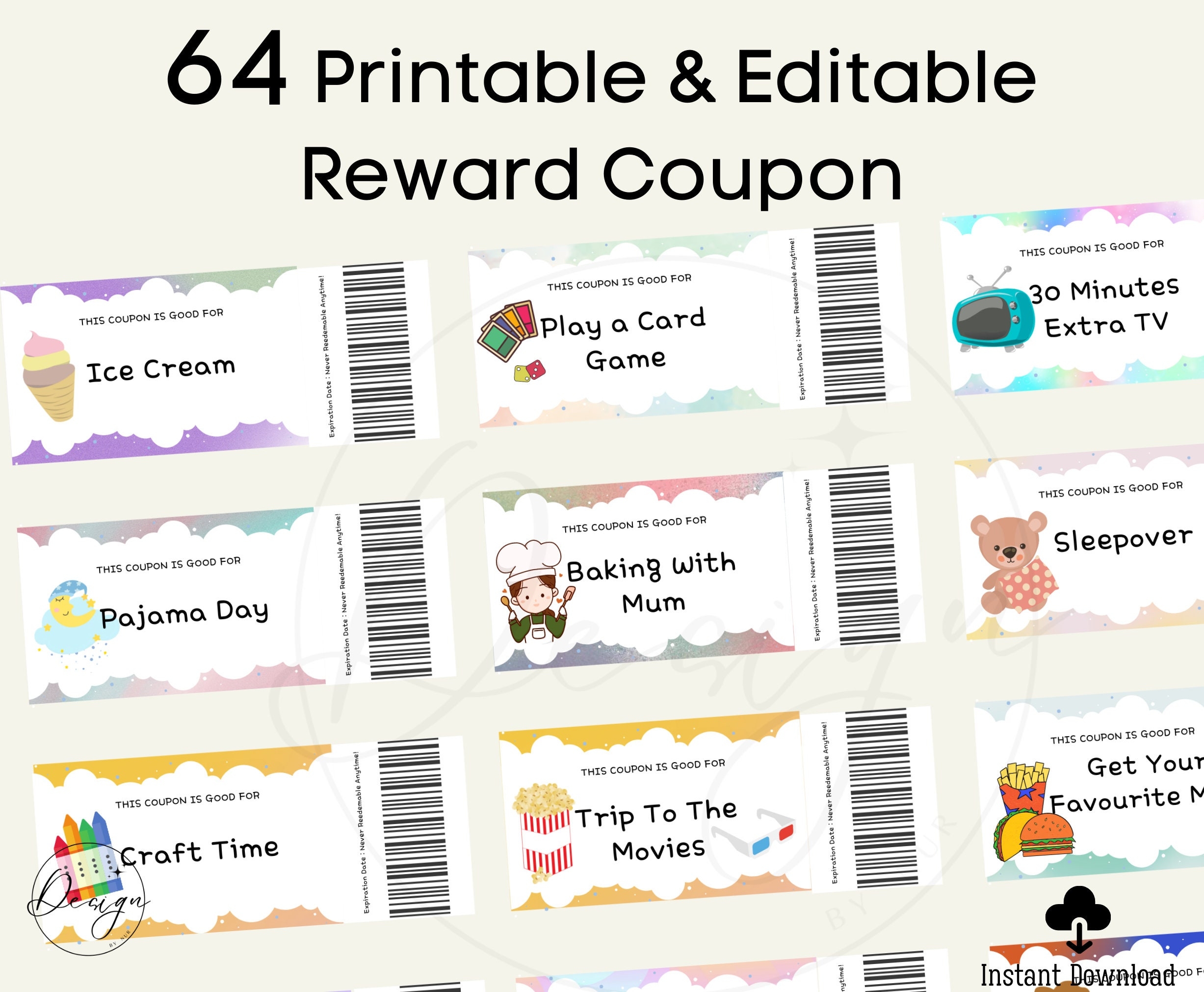 Printable Kids Reward Coupons Editable Reward Coupons Pre Filled Rewards Coupons Blank Editable Template Good Behavior Love Coupons