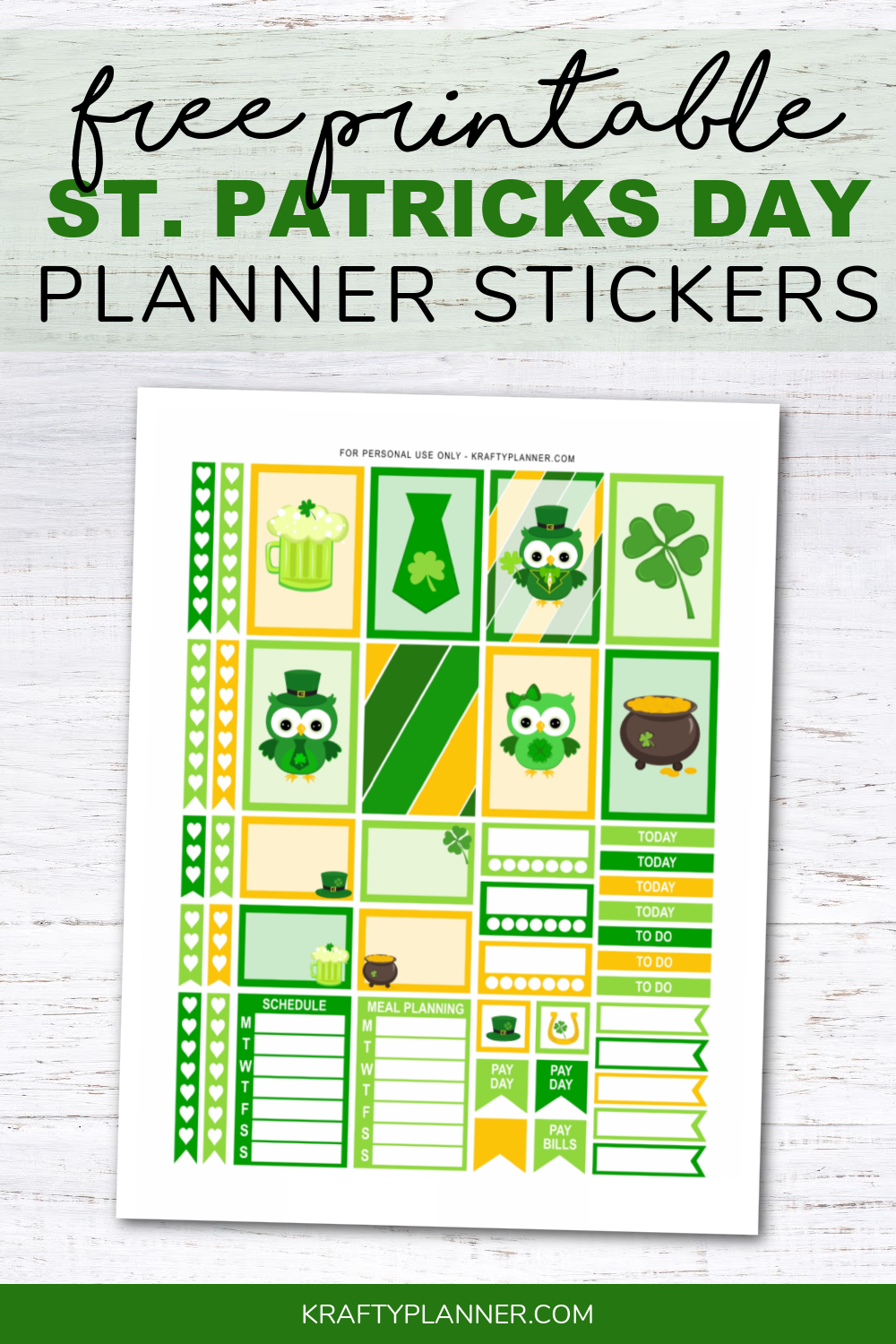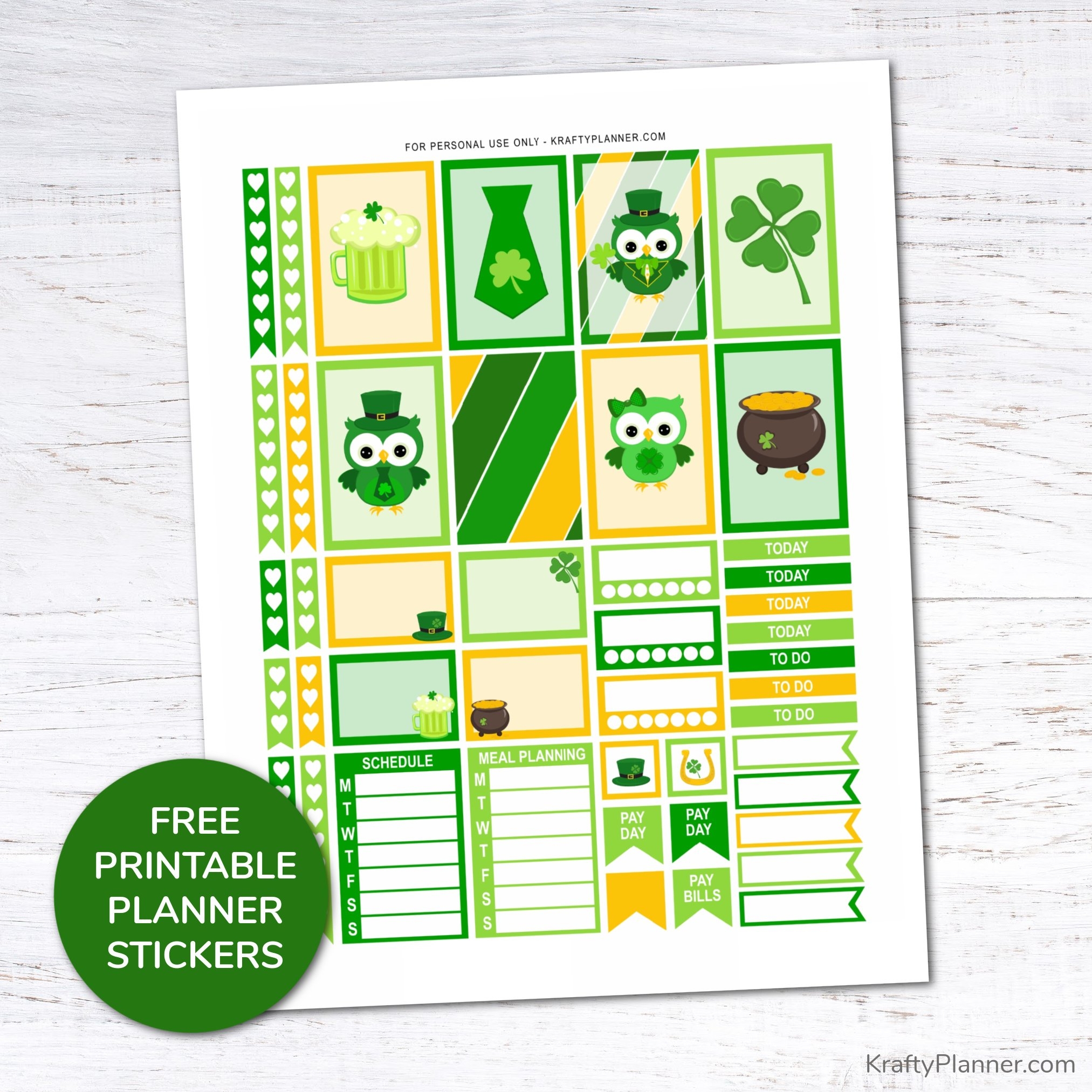 Free Printable St Patrick s Day Planner Stickers Krafty Planner