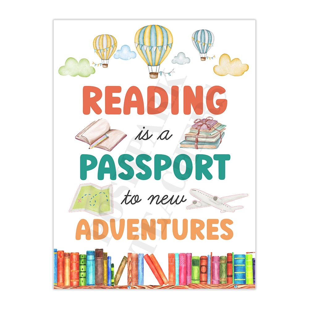 Printable Book Quotes Poster Reading Is A Passport For New Adventures Retro School Library Poster Made By Teachers