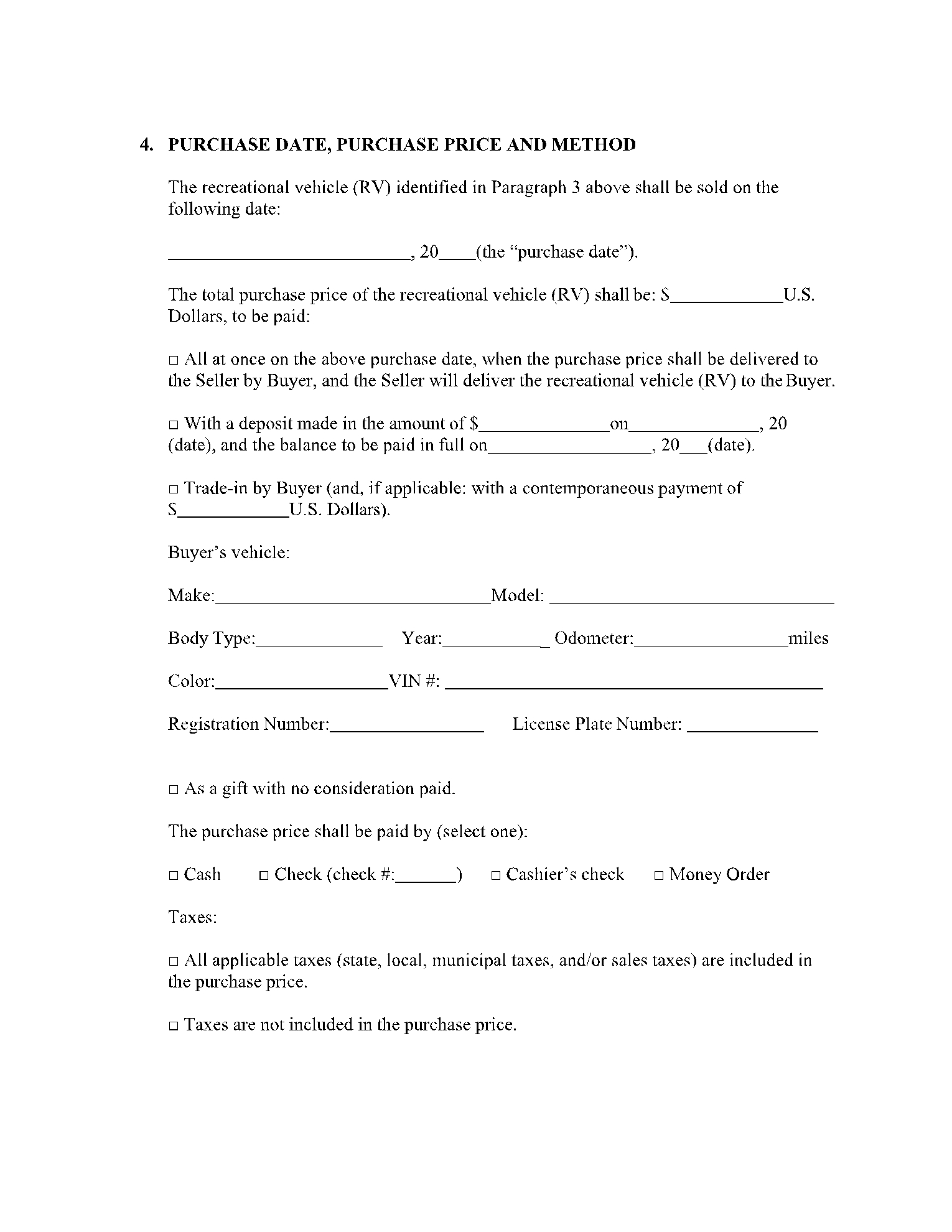Recreational Vehicle RV Bill Of Sale Forms Word PDF
