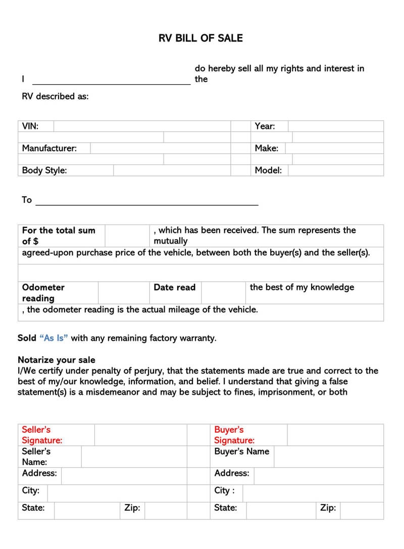 Free Recreational Vehicle RV Bill Of Sale Template CocoSign