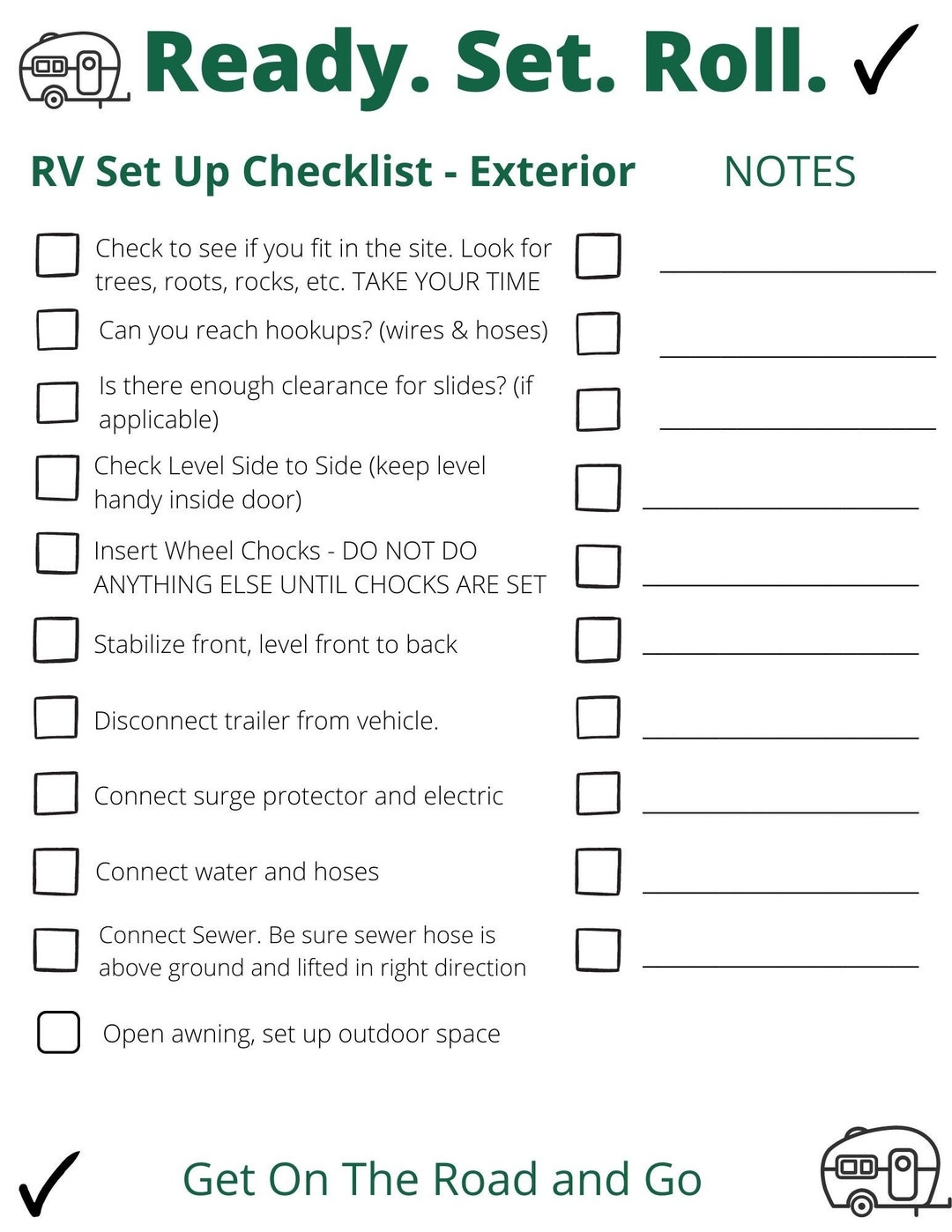 PRINTED SHIPPED RV Checklist For Travel Trailers Set Up breakdown interior exterior With Space For Notes Etsy