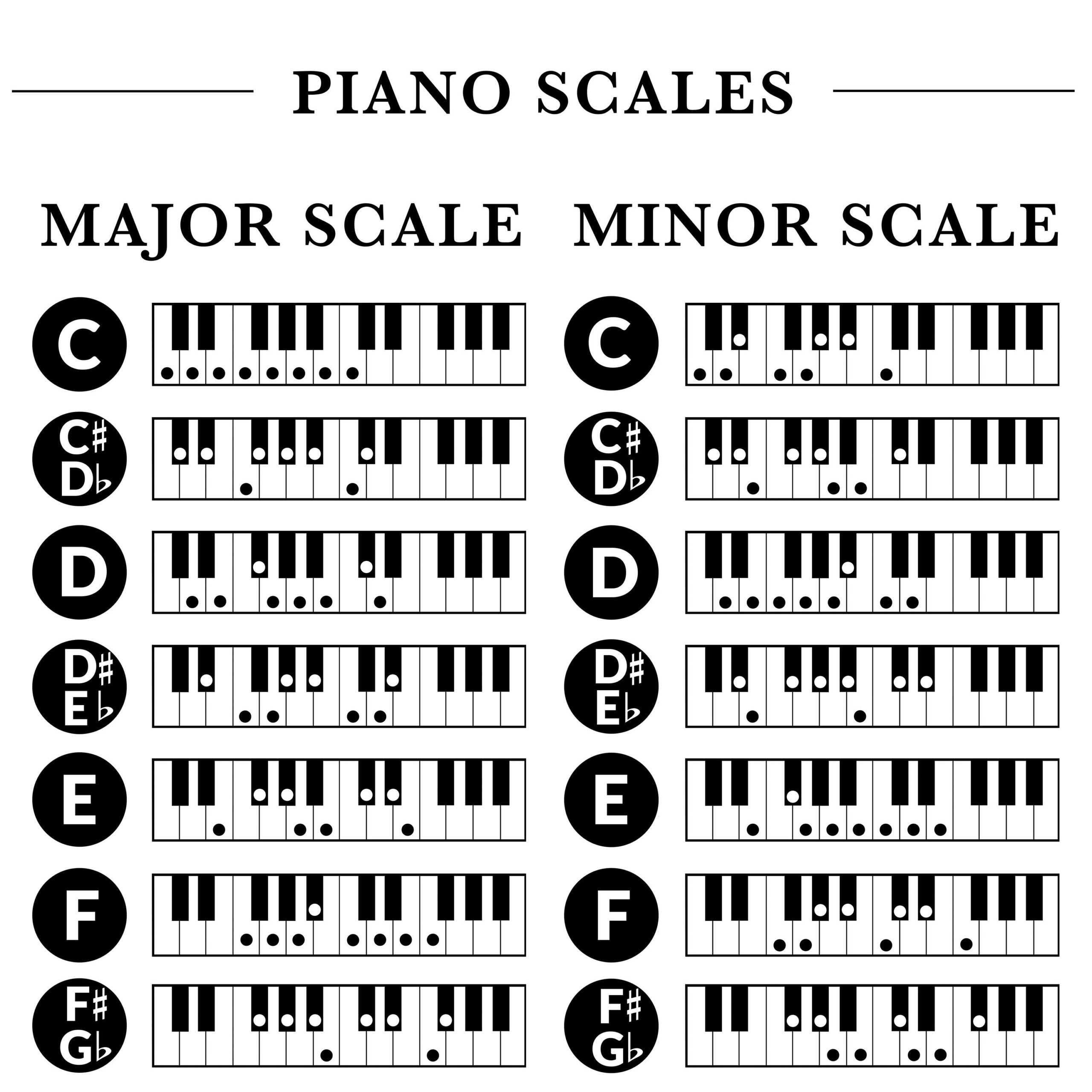 Major U0026 Minor Piano Scales Chart In Illustrator PDF Download