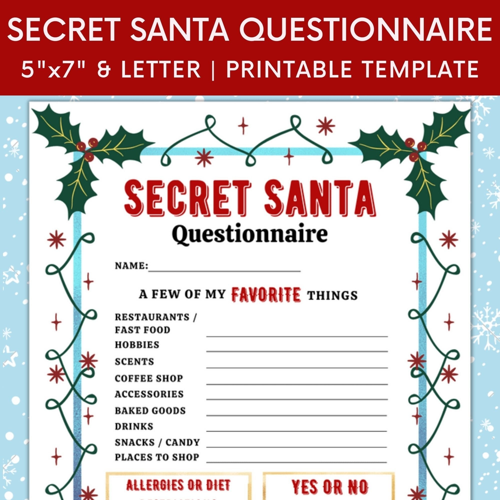 Some popular questions to include on your printable list could be: What’s your favorite movie genre? Do you prefer coffee or tea? What’s your go-to snack? These simple questions can provide valuable insights into what your Secret Santa recipient might enjoy.