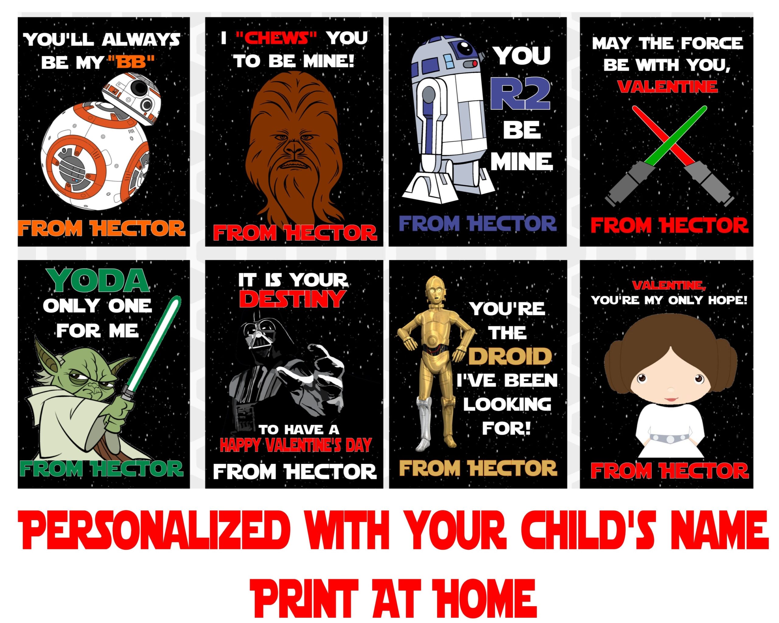 Customized Starwars Valentine s Day Cards Printable Print At Home Printable Valentine Cards For Kids