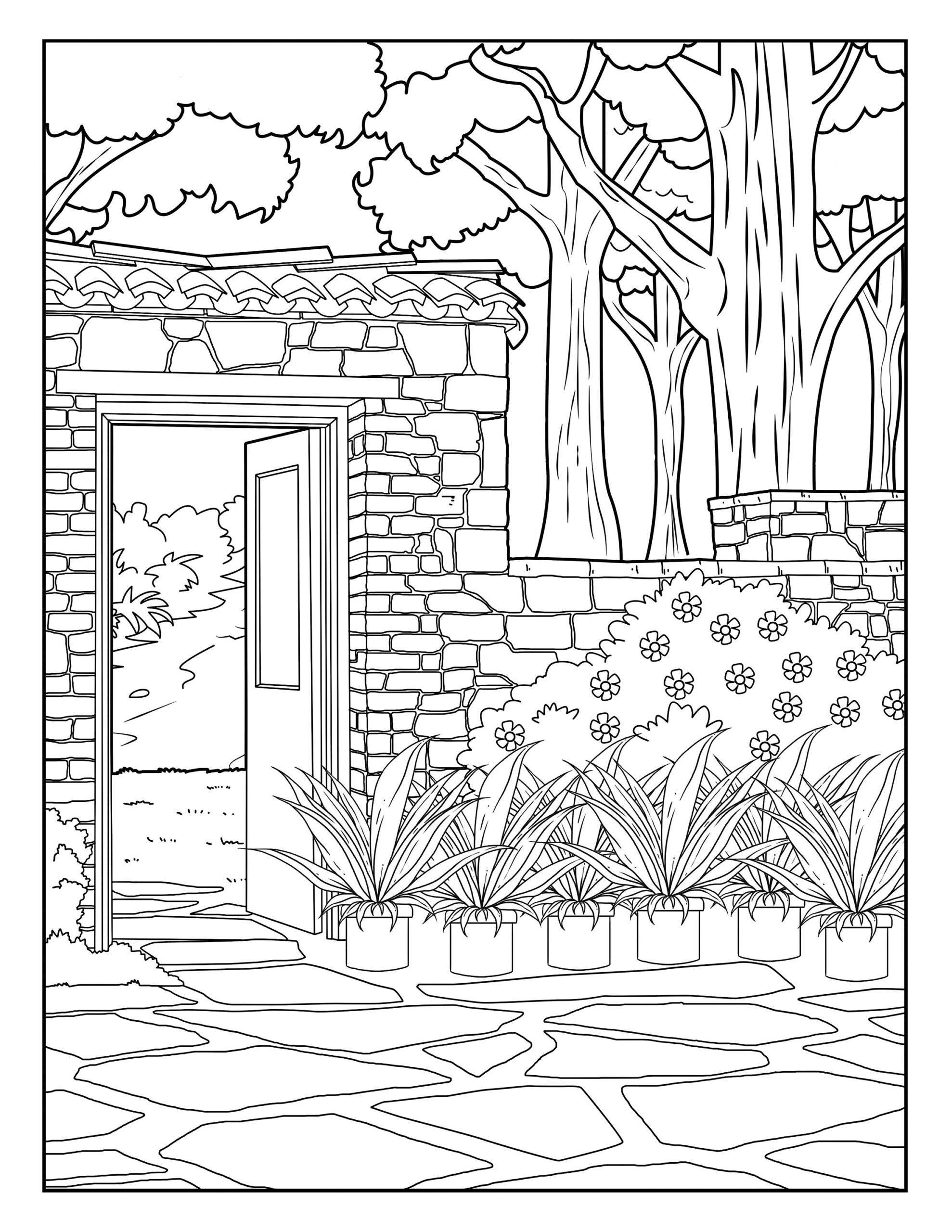 Stone Wall Garden Gallery Coloring Pages For Adults 1 Printable Coloring Page Instant Download PDF