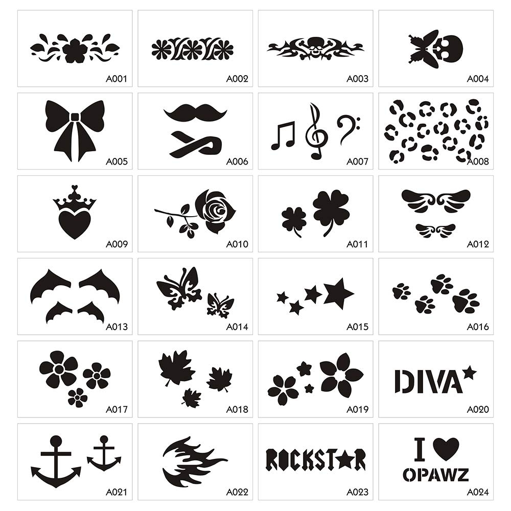 Amazon OPAWZ Tattoo Stencil Set 24pcs Unique Designs