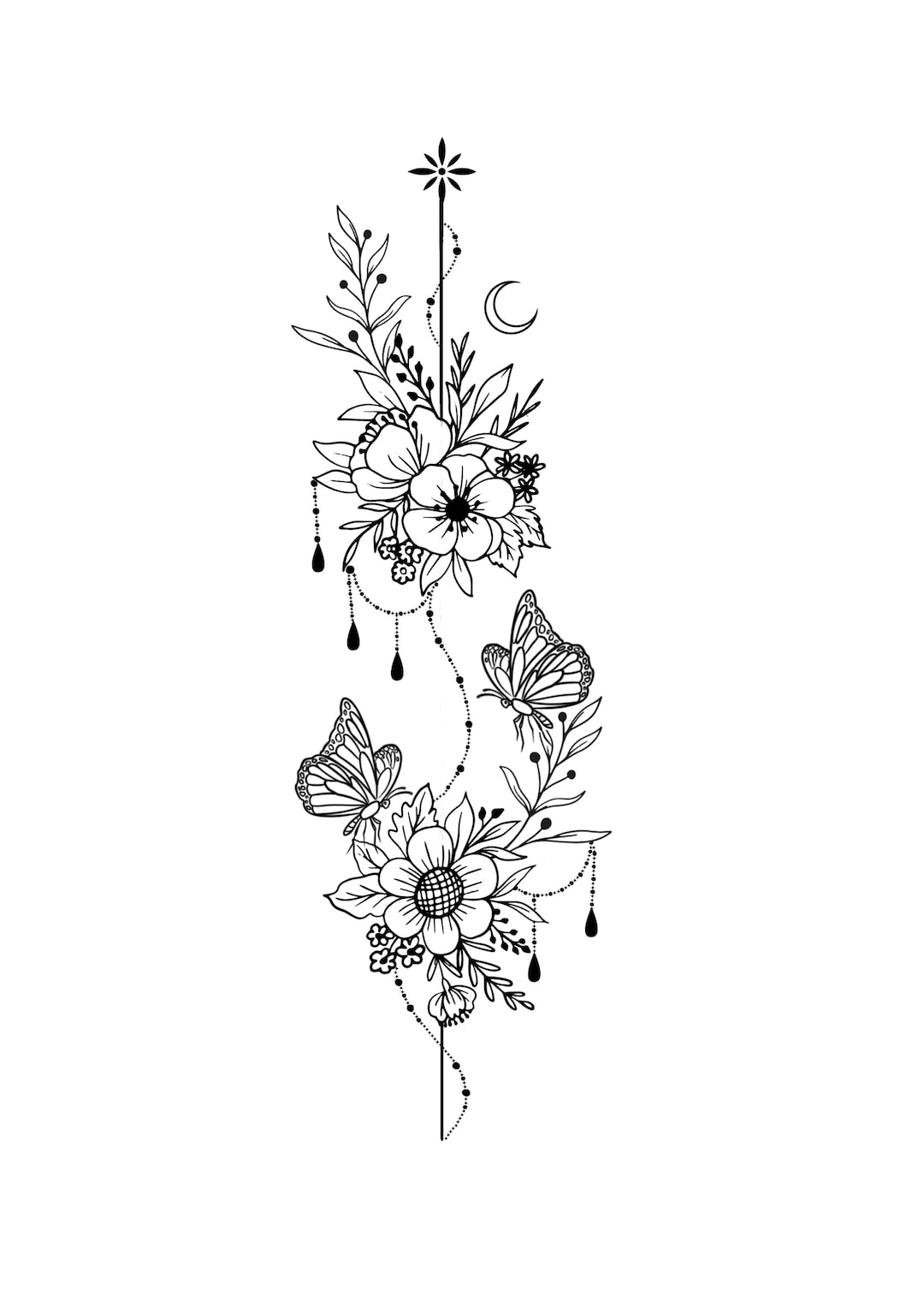 Flower Ornament Tattoo Stencil Etsy