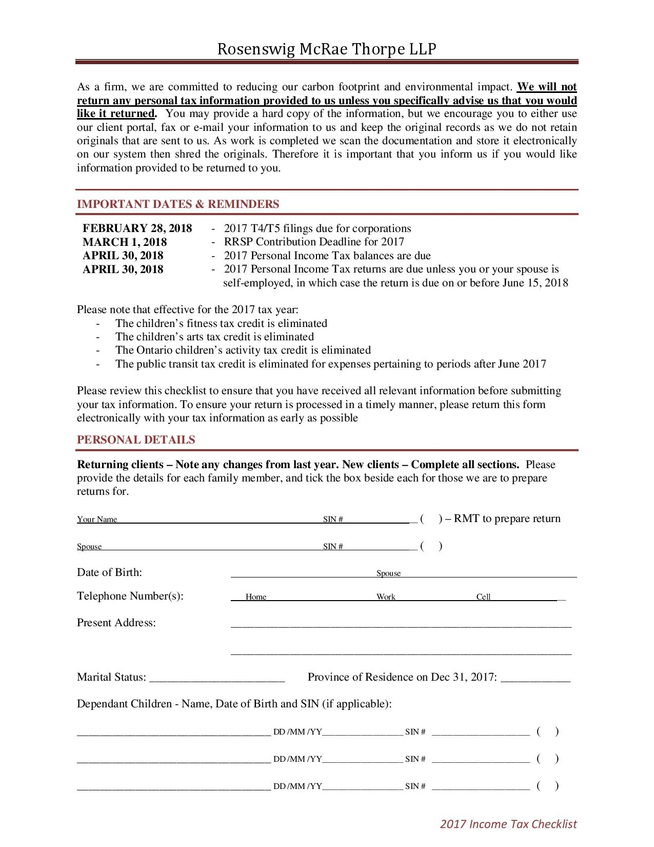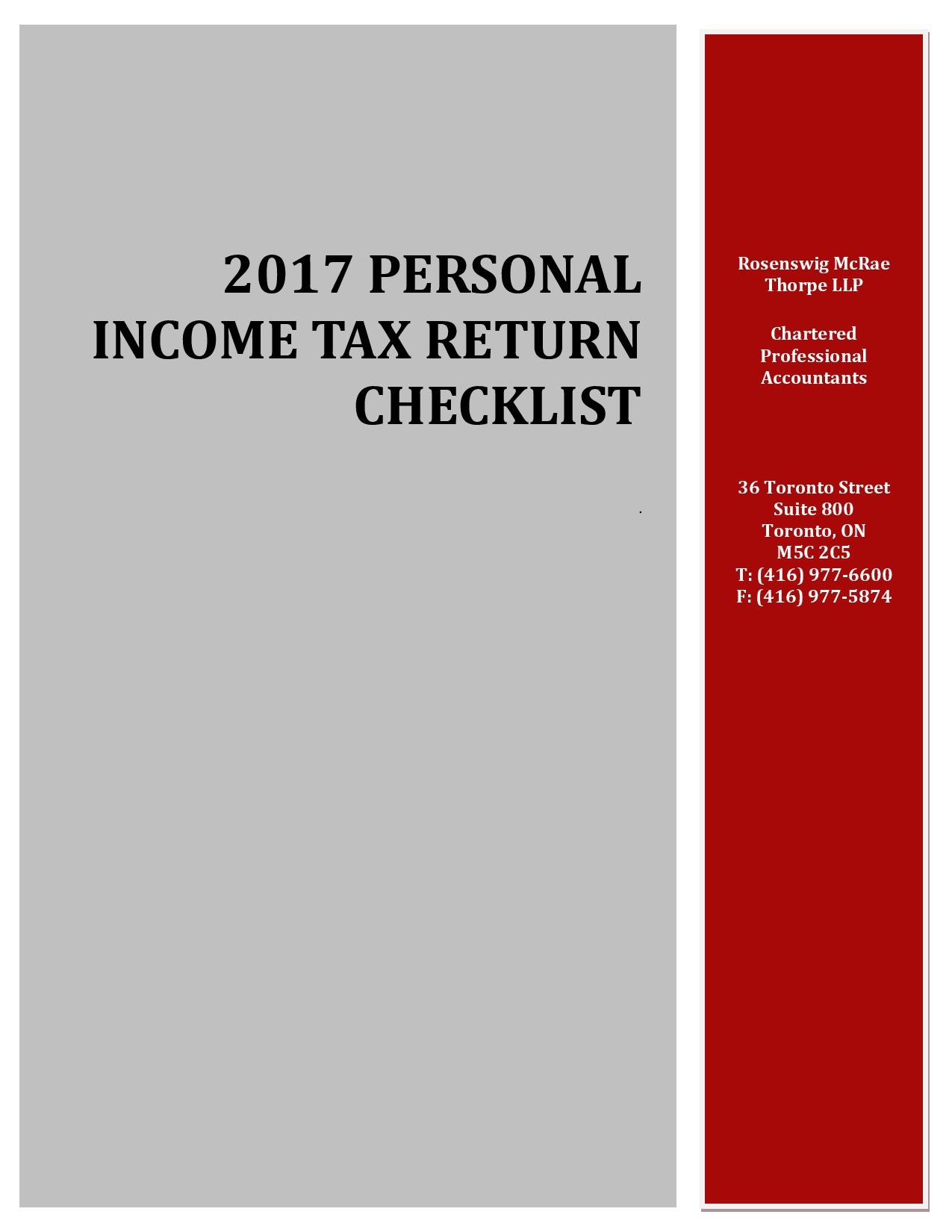 2017 Personal Income Tax Checklist RMR Rosenswig McRae Rosso LLP