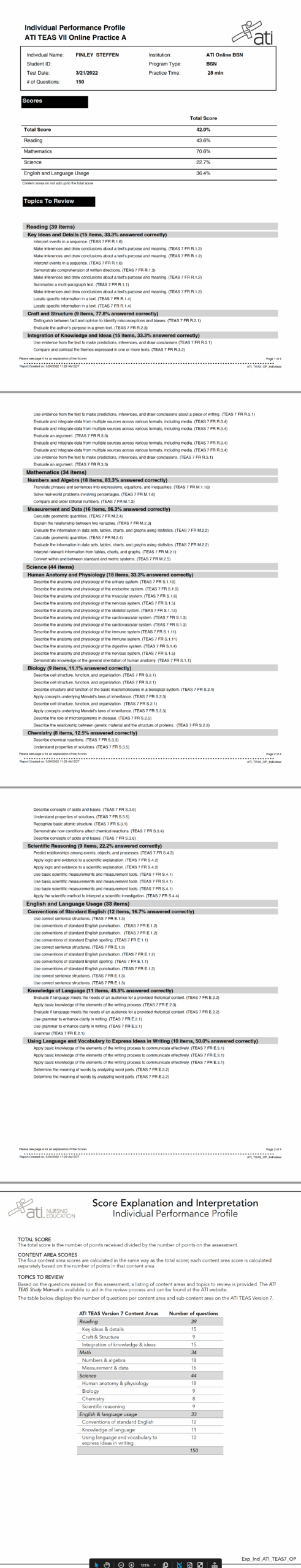 Details About Your TEAS Online Practice Tests ATI