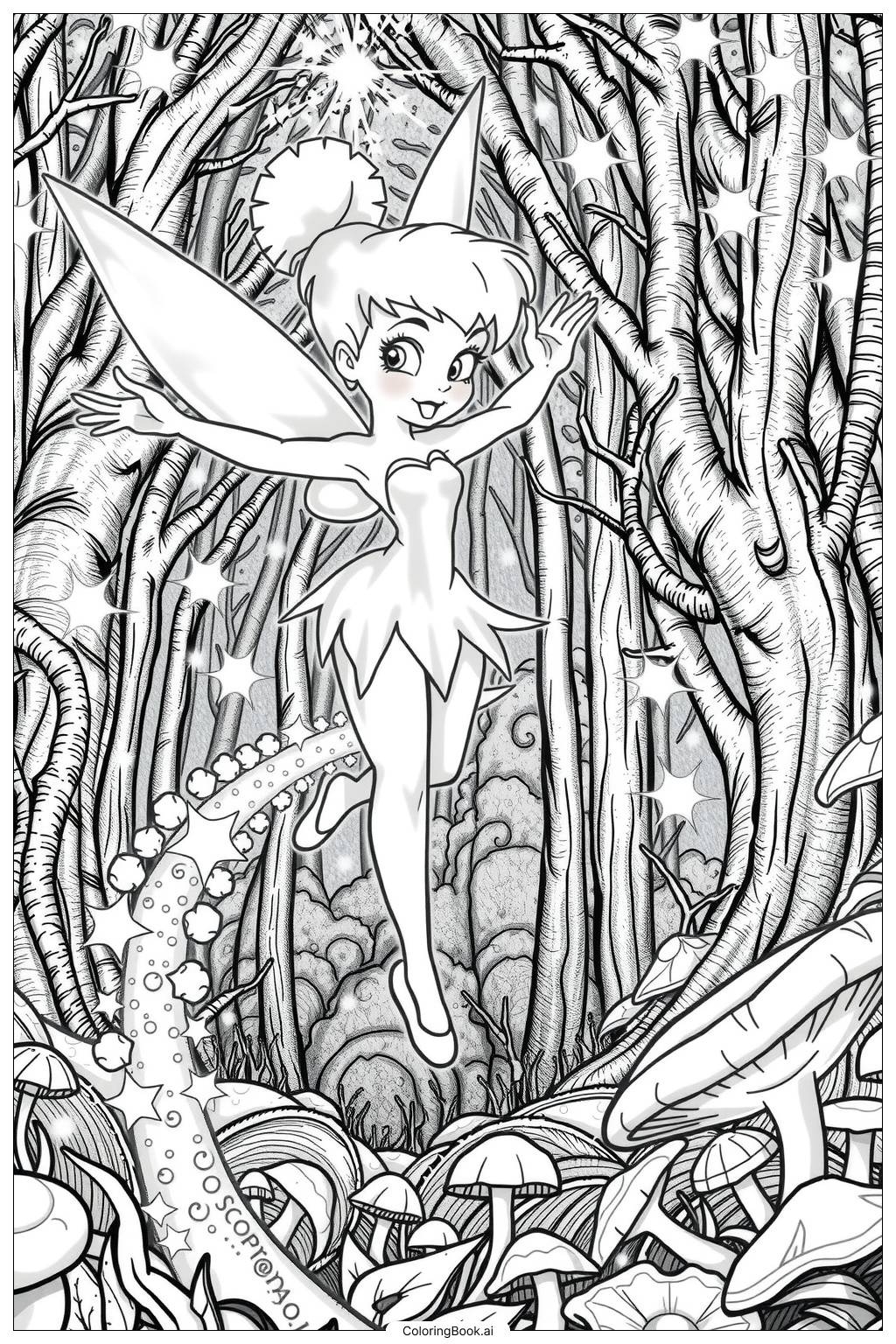 Disney Tinkerbell Flying Through A Magical Forest 2 Coloring Page Free PDFu0026PNG Printable