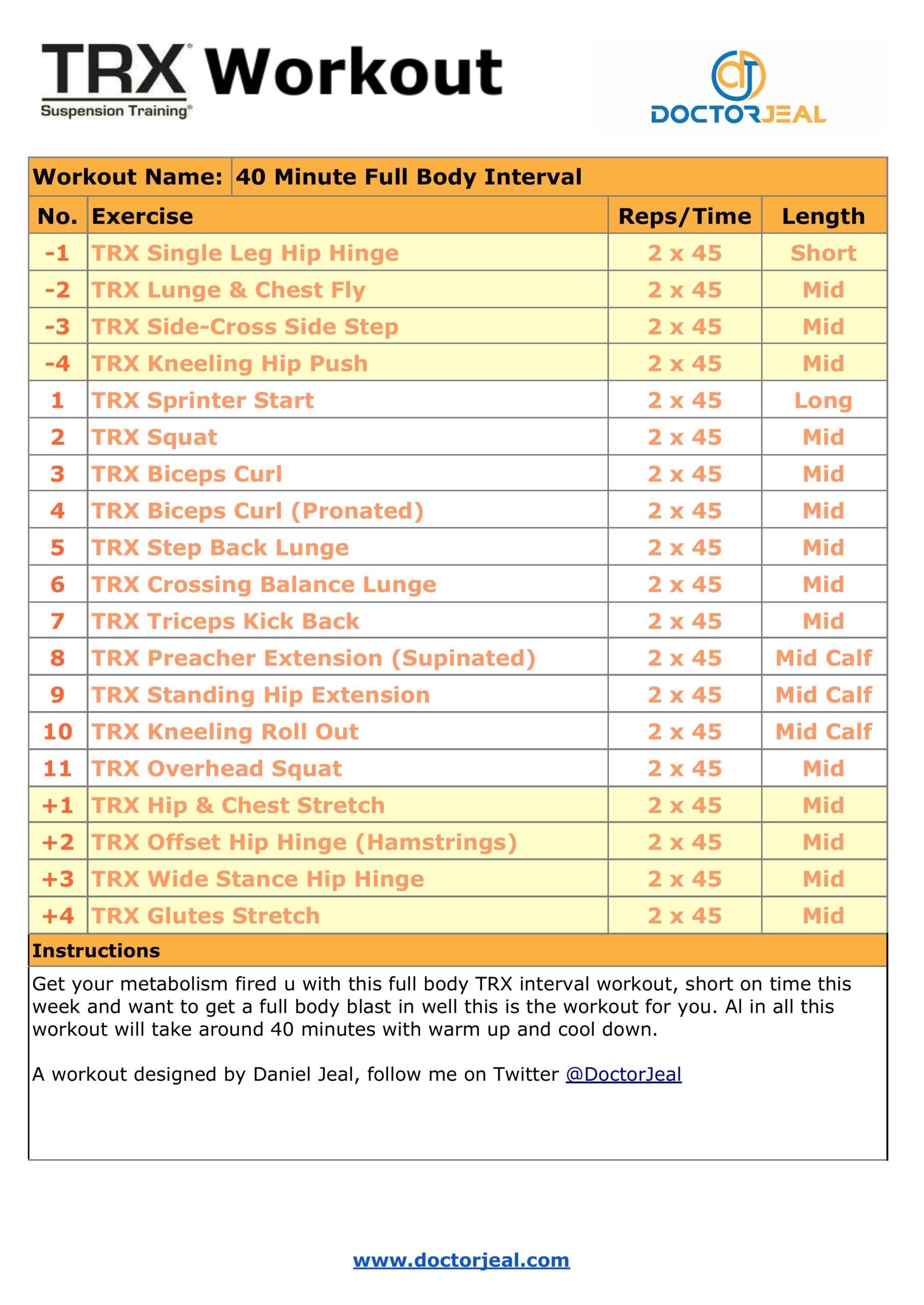 TRX 40 Minute Full Body Interval Workout Card PDF DoctorJeal