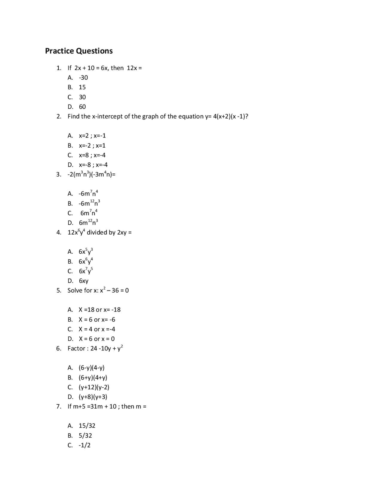 TSI Math Practice questions pdf Lecture Notes Calculus Docsity