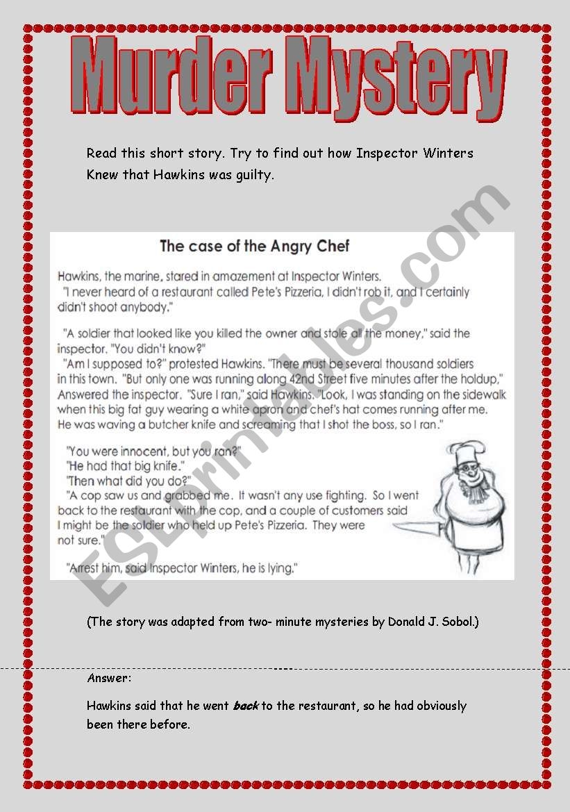 Murder Mystery The Angry Chef ESL Worksheet By Valentinaper