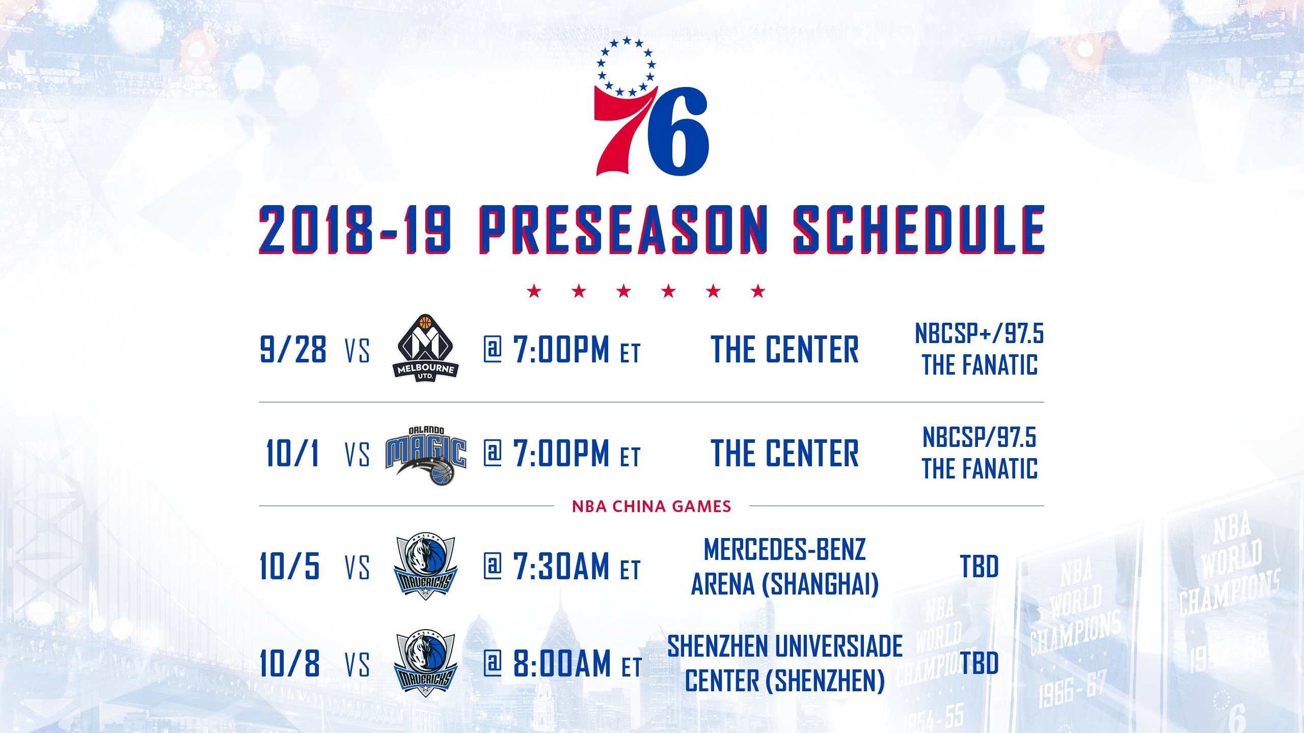 2018 19 Preseason Schedule Announced Philadelphia Sixers