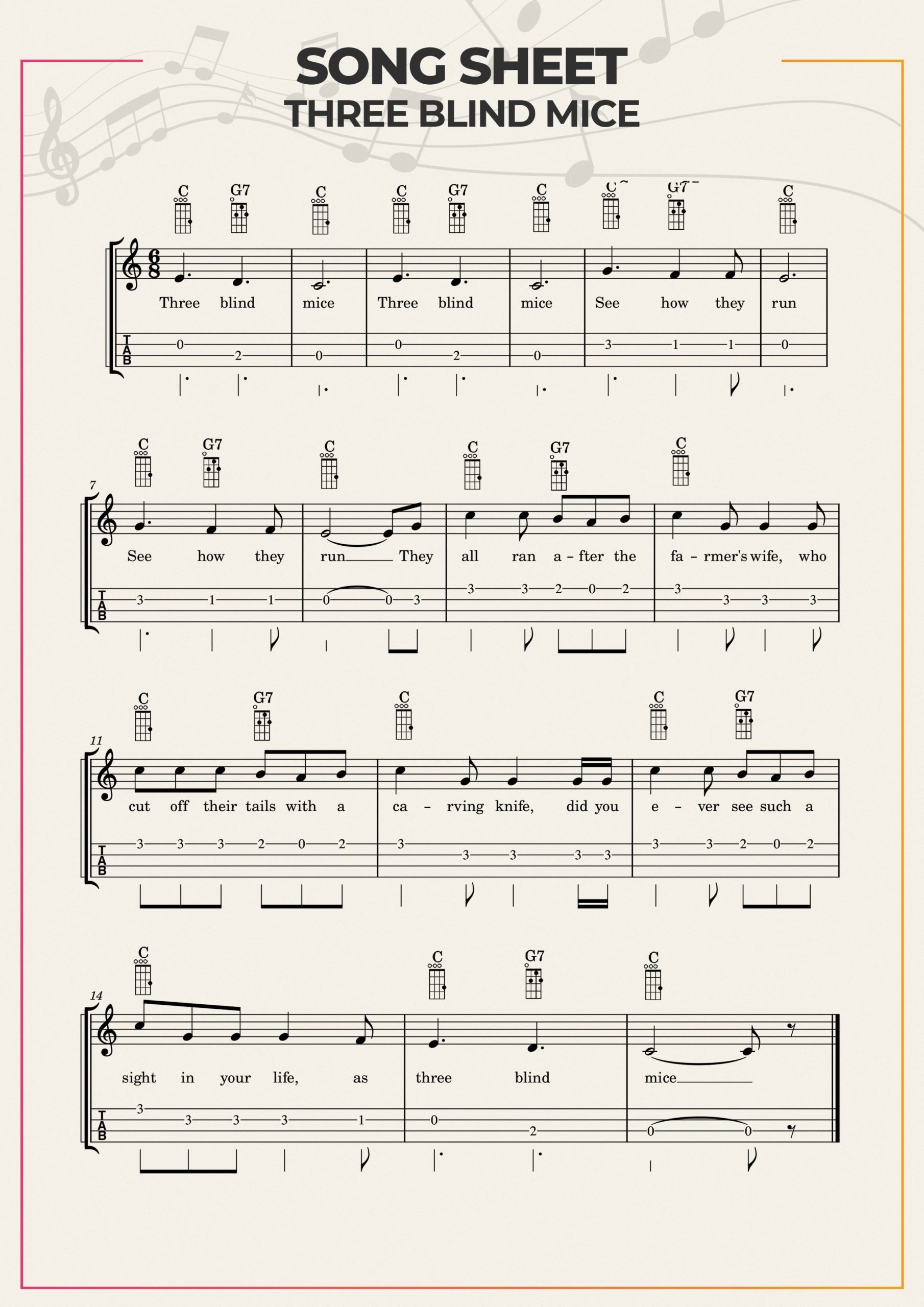 With these printable ukulele songs for beginners, you’ll be able to practice and improve your skills while having a blast. So grab your ukulele, print out the songs, and start strumming away!