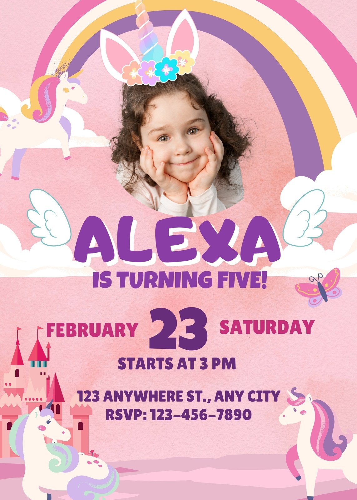 Don’t forget to include important details like the date, time, and location of the party, as well as any special instructions or RSVP information. You can also add a touch of sparkle with glitter accents or rainbow colors to make your invites truly enchanting.